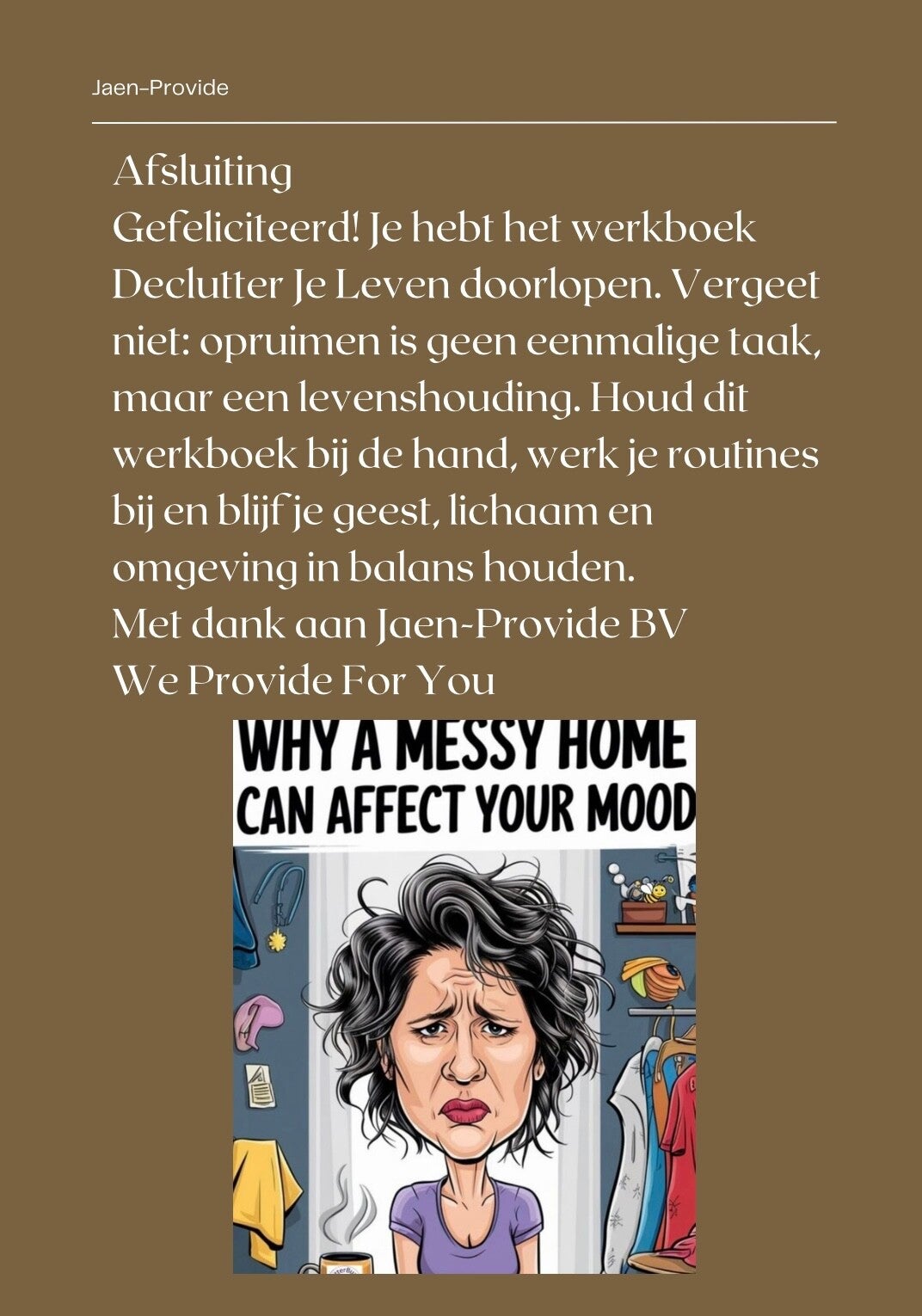 Welkom bij het werkboek Declutter Je Leven. In dit werkboek neem je stap voor stap de controle terug over je spullen, je gedachten en je digitale omgeving. Je gaat aan de slag met concrete opdrachten, reflectievragen, checklists én een maandelijkse planning. Gebruik dit werkboek als leidraad op weg naar een rustiger, overzichtelijker leven.